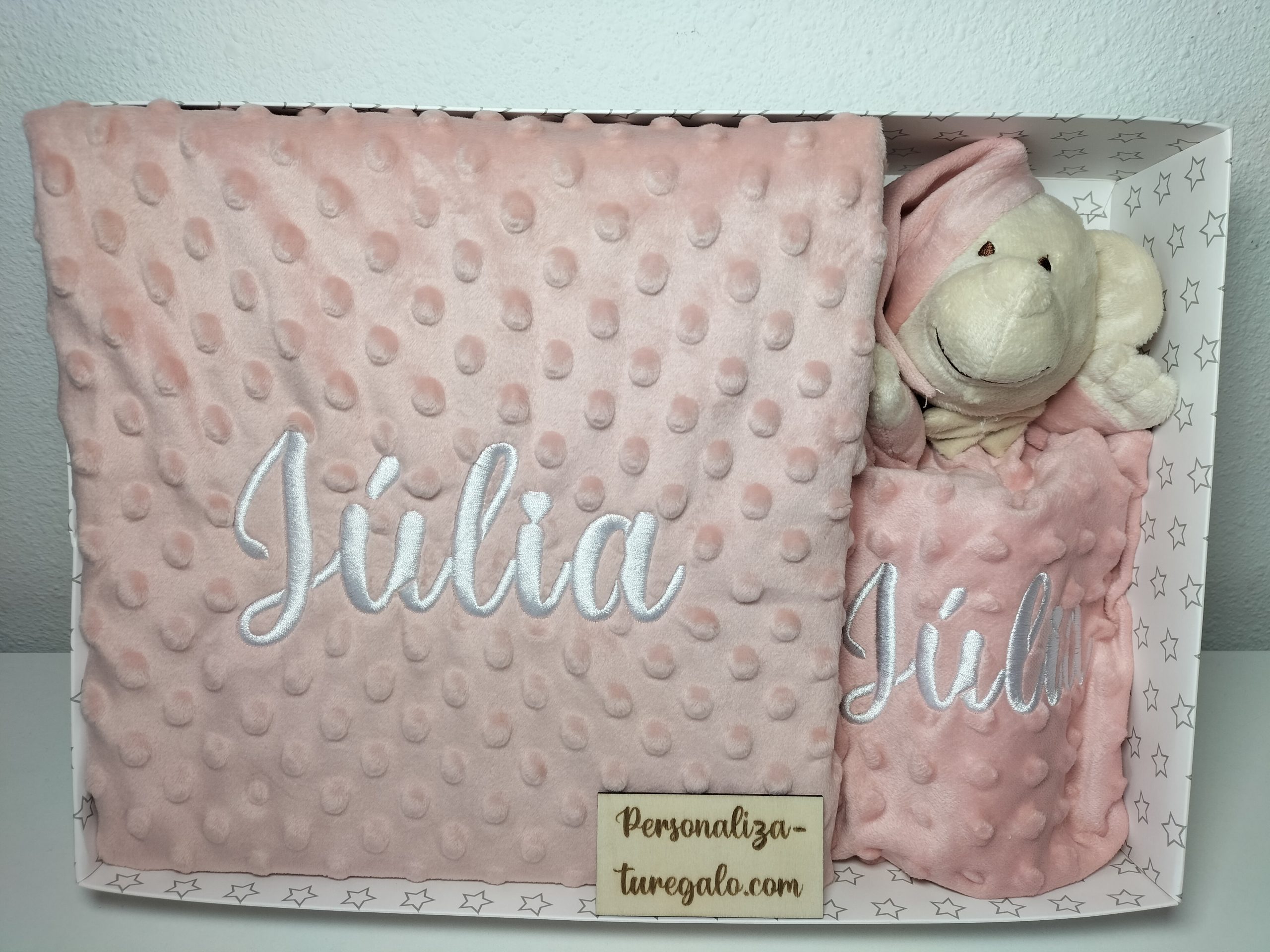 Cajita Manta + Doudou Bordado Osito Rosa Maquillaje