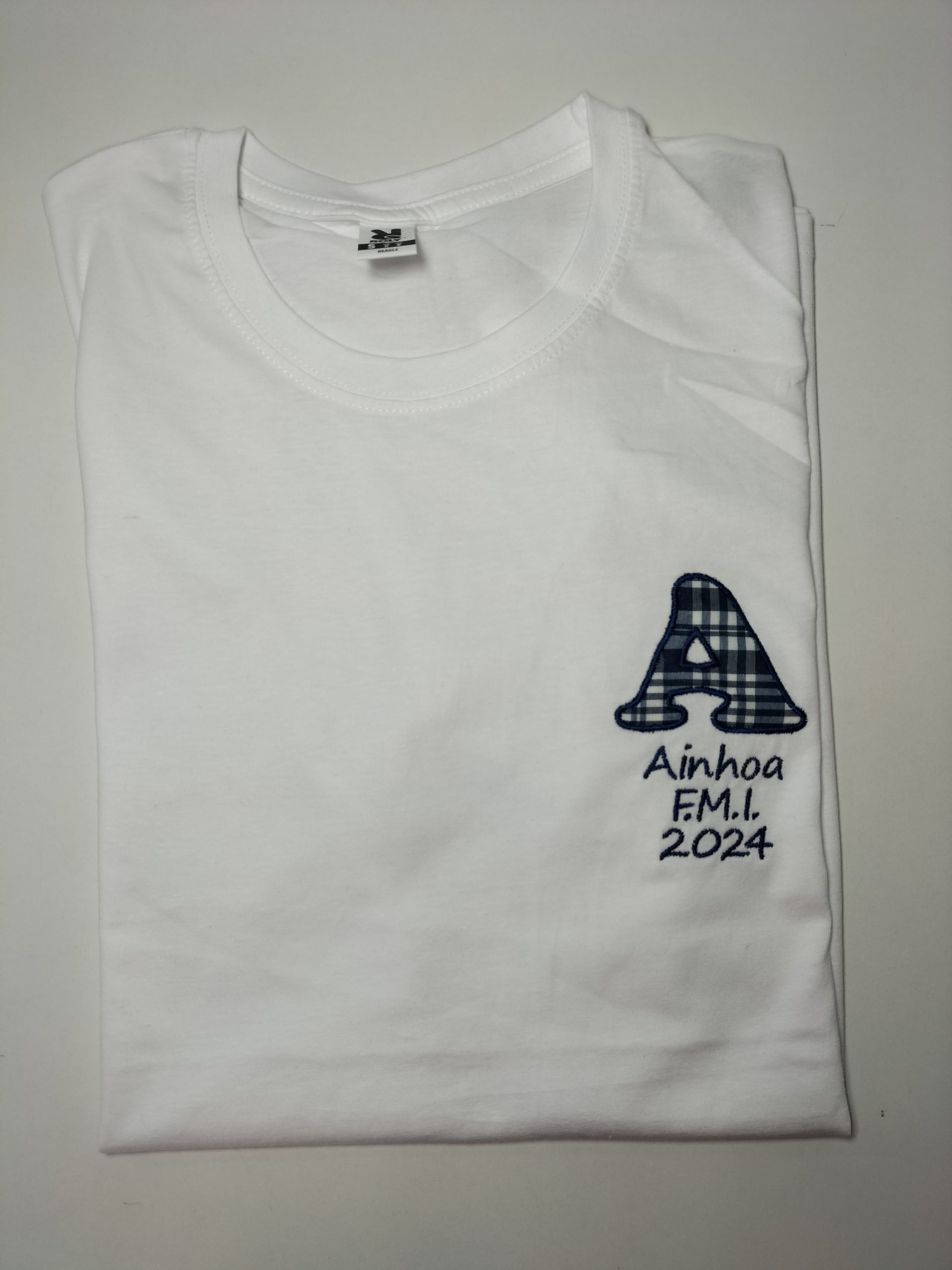 Altura aproximada de la inicial 5-7cm (según la talla de la camiseta será más grande o más pequeña)