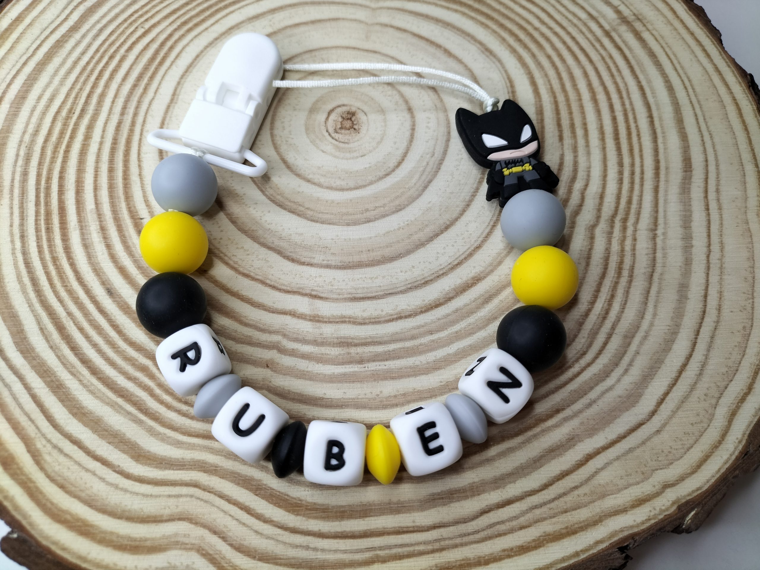 -Personalizado con el nombre de tu bebé. Es ideal para aliviar los dolores de la dentición, para no perder su chupete o su mordedor, incluso para ser diferenciados en la guarde.