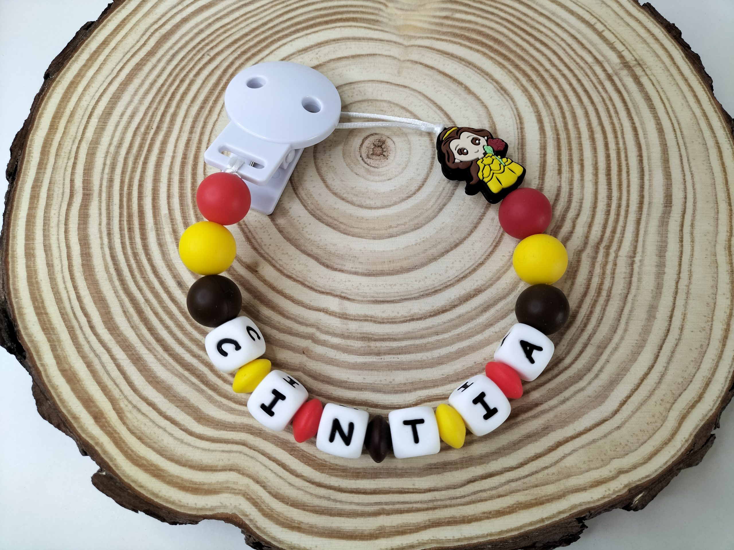 -Personalizado con el nombre de tu bebé. Es ideal para aliviar los dolores de la dentición, para no perder su chupete o su mordedor, incluso para ser diferenciados en la guarde.