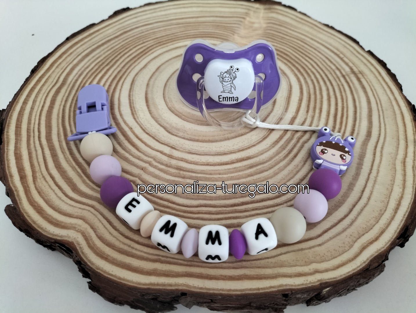 -Personalizado con el nombre de tu bebé. Es ideal para aliviar los dolores de la dentición, para no perder su chupete o su mordedor, incluso para ser diferenciados en la guarde.