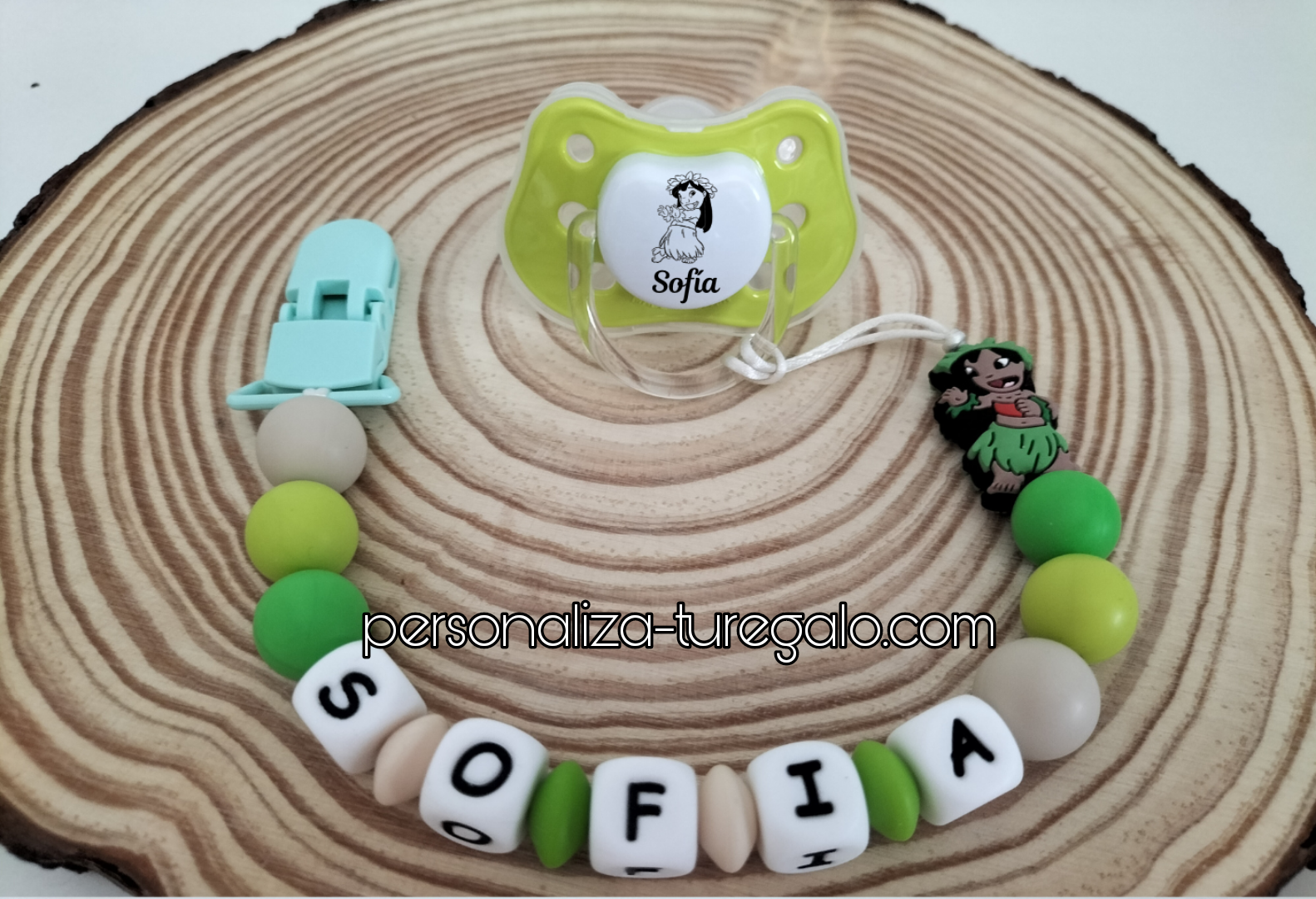 -Personalizado con el nombre de tu bebé. Es ideal para aliviar los dolores de la dentición, para no perder su chupete o su mordedor, incluso para ser diferenciados en la guarde.