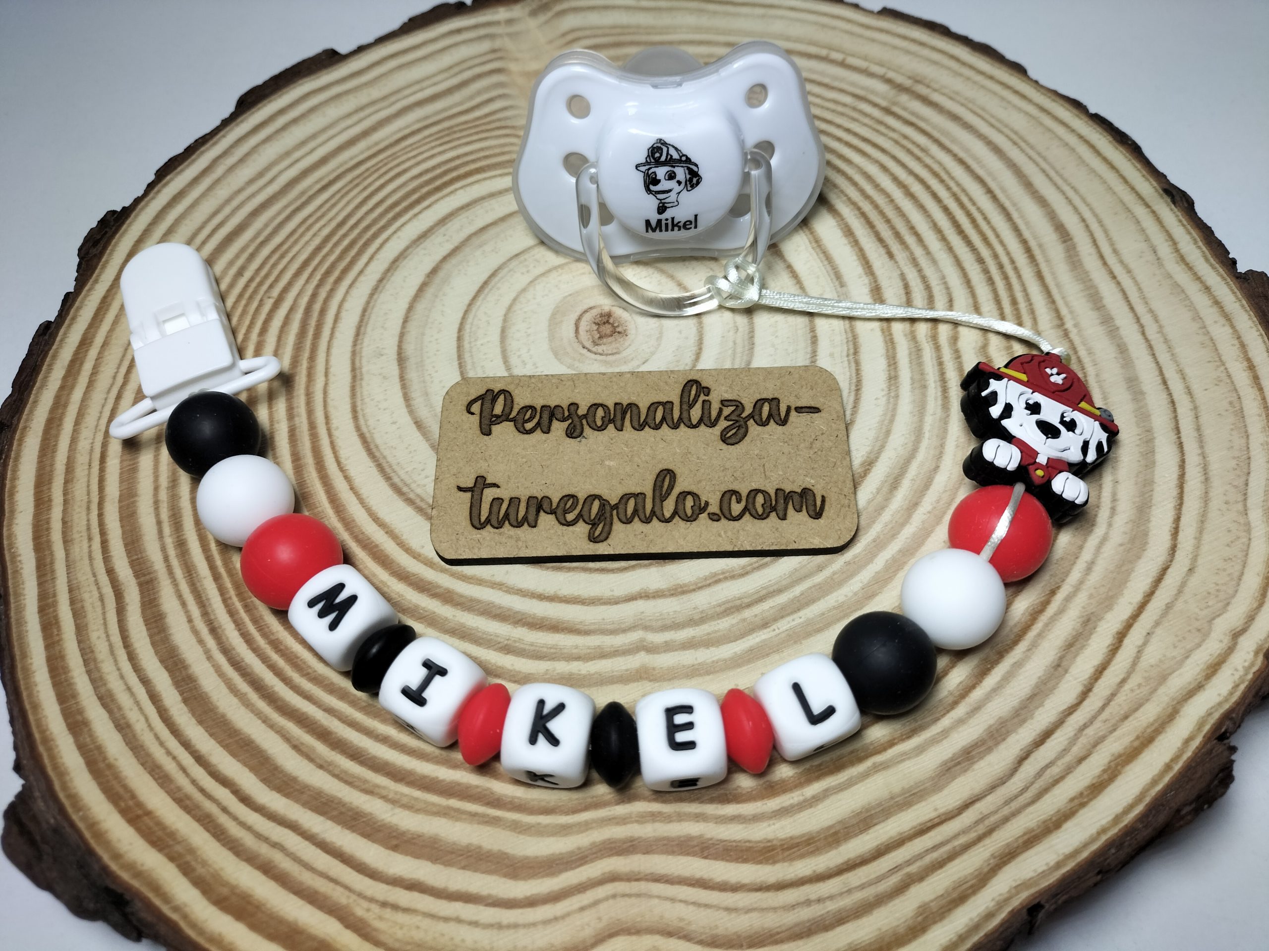 -Personalizado con el nombre de tu bebé. Es ideal para aliviar los dolores de la dentición, para no perder su chupete o su mordedor, incluso para ser diferenciados en la guarde.