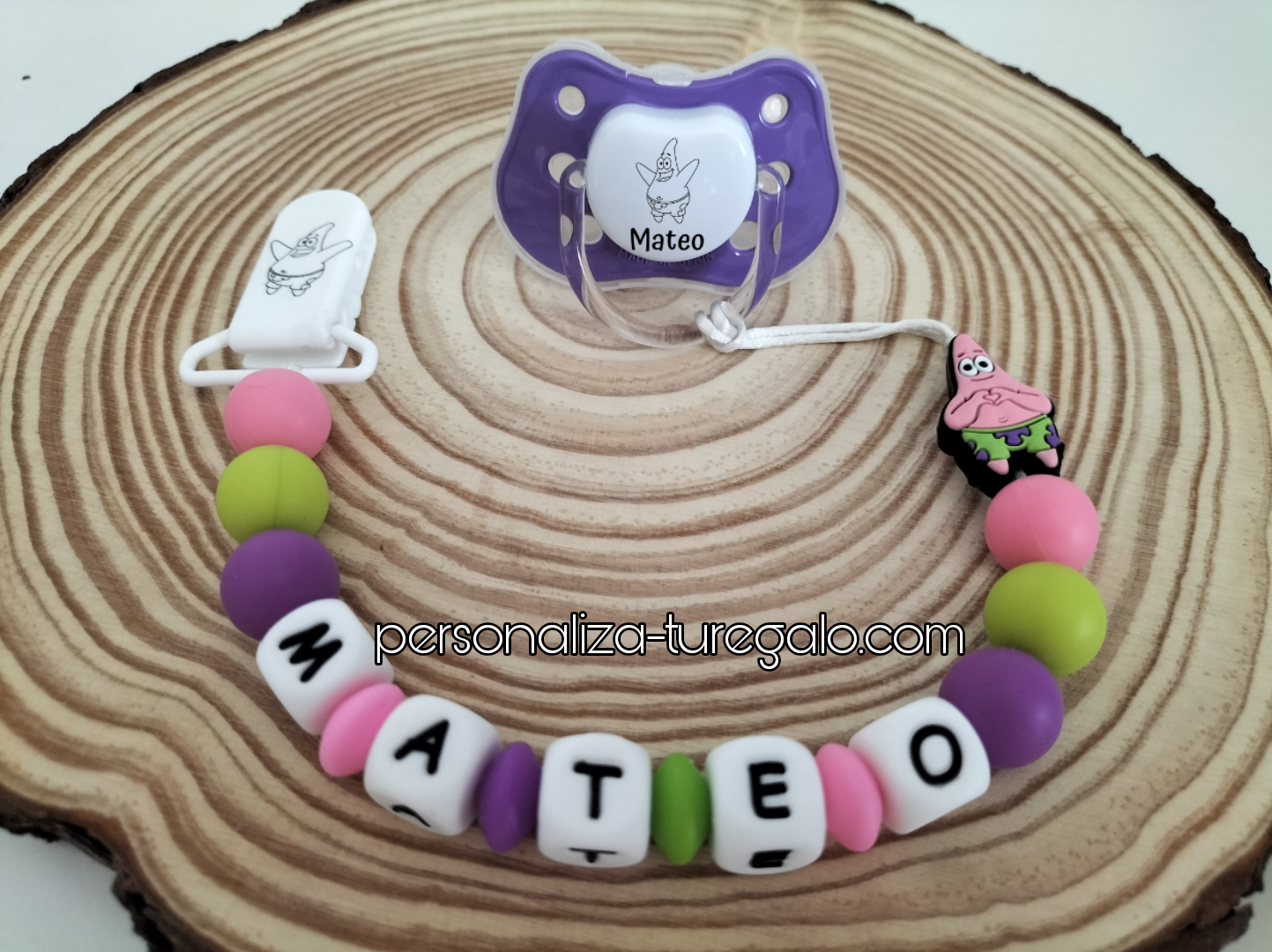 -Personalizado con el nombre de tu bebé. Es ideal para aliviar los dolores de la dentición, para no perder su chupete o su mordedor, incluso para ser diferenciados en la guarde.