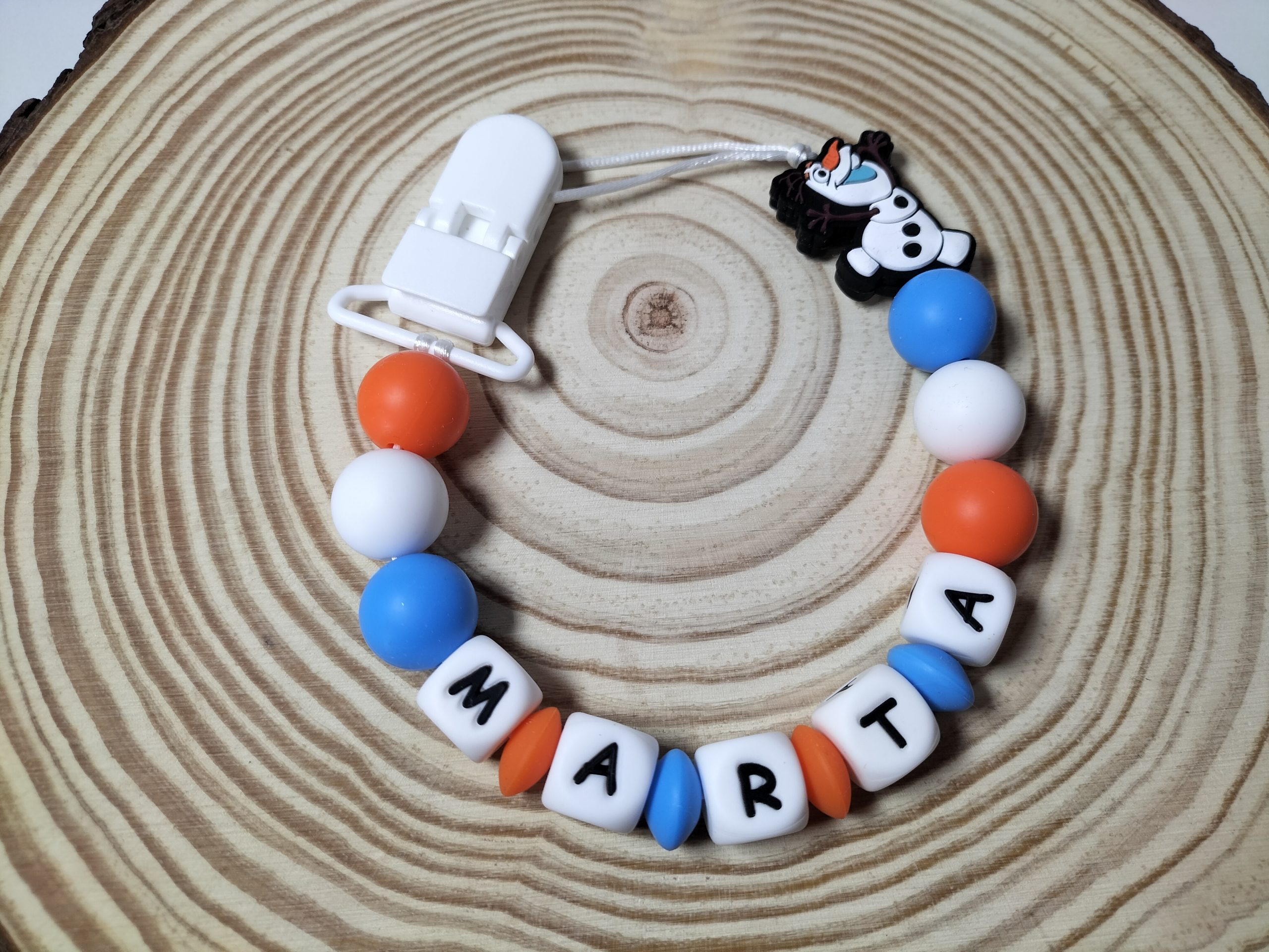-Personalizado con el nombre de tu bebé. Es ideal para aliviar los dolores de la dentición, para no perder su chupete o su mordedor, incluso para ser diferenciados en la guarde.