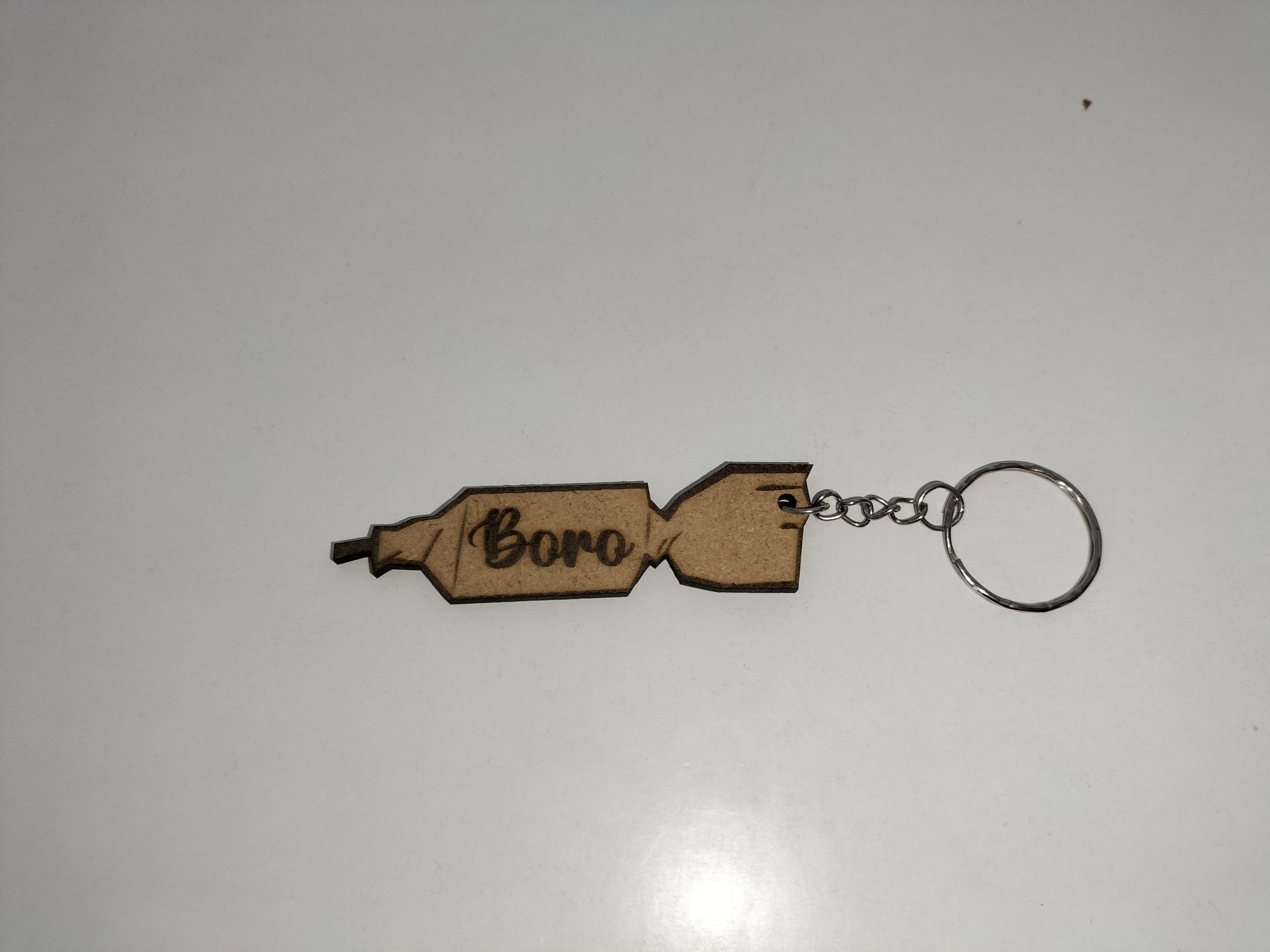Llavero de madera personalizado con forma de peineta o petardo + nombre