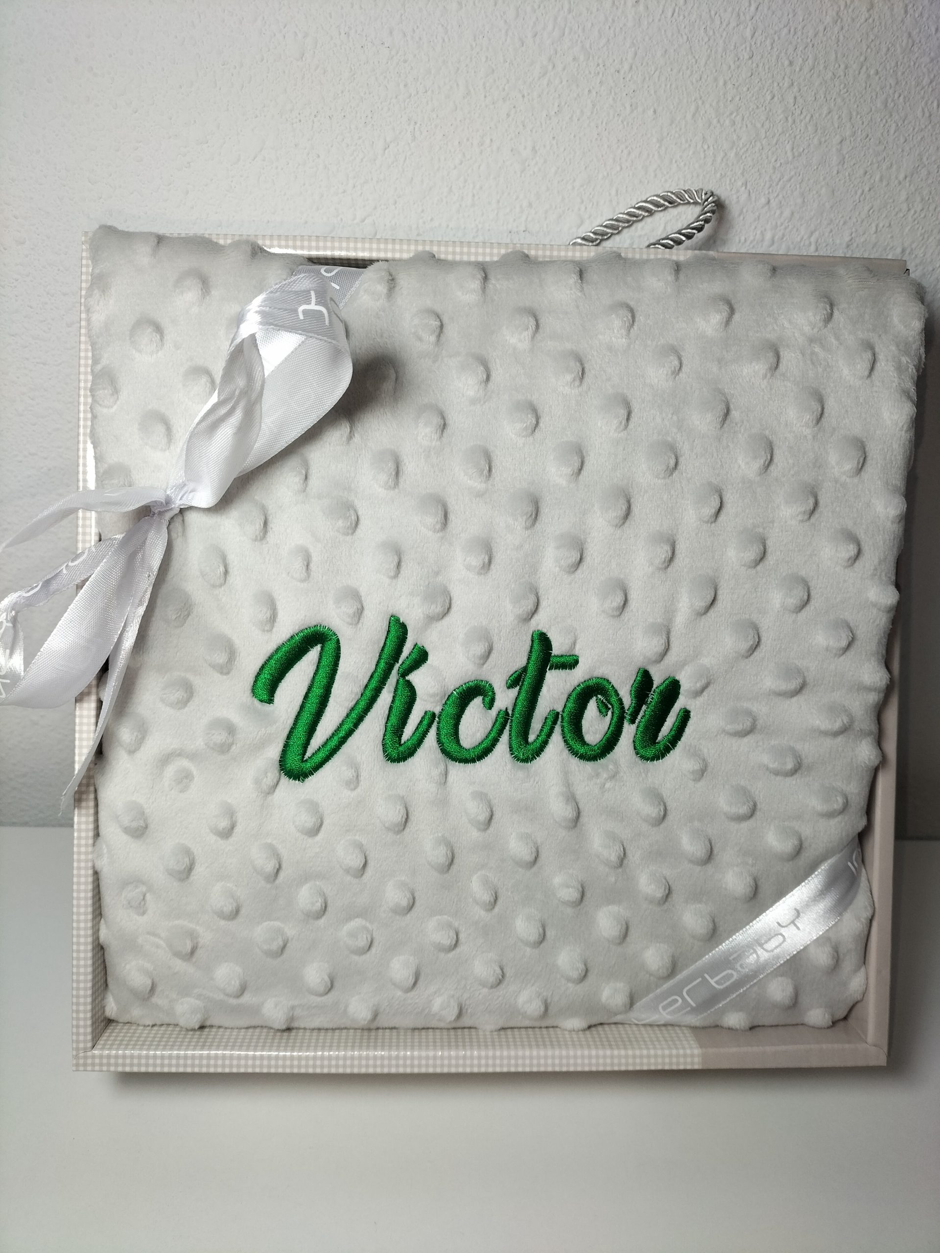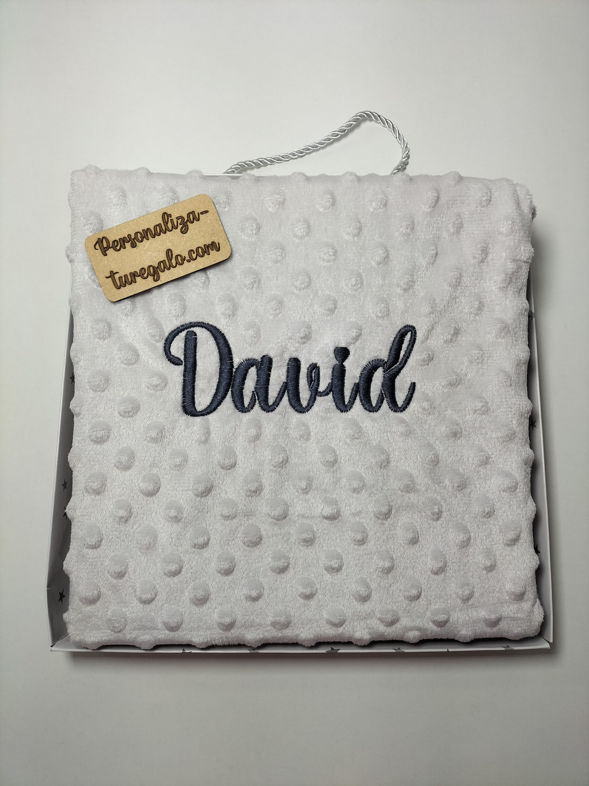 Manta Topitos Gris + nombre bordado