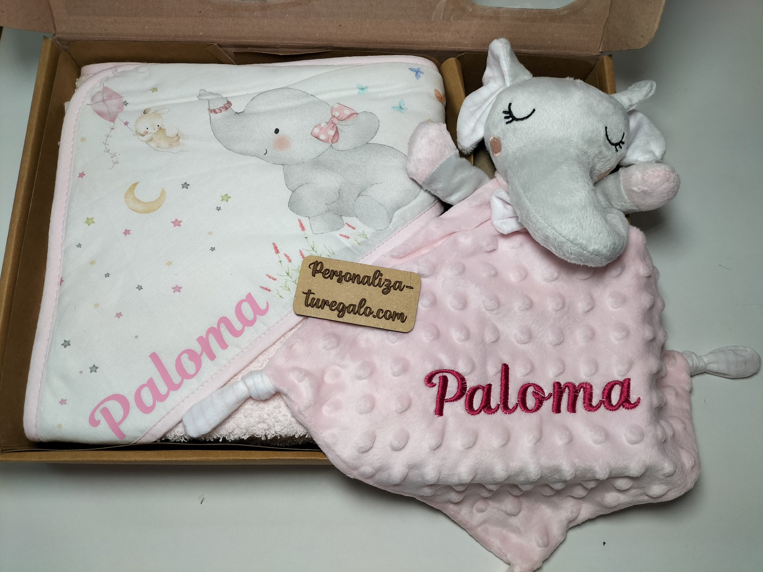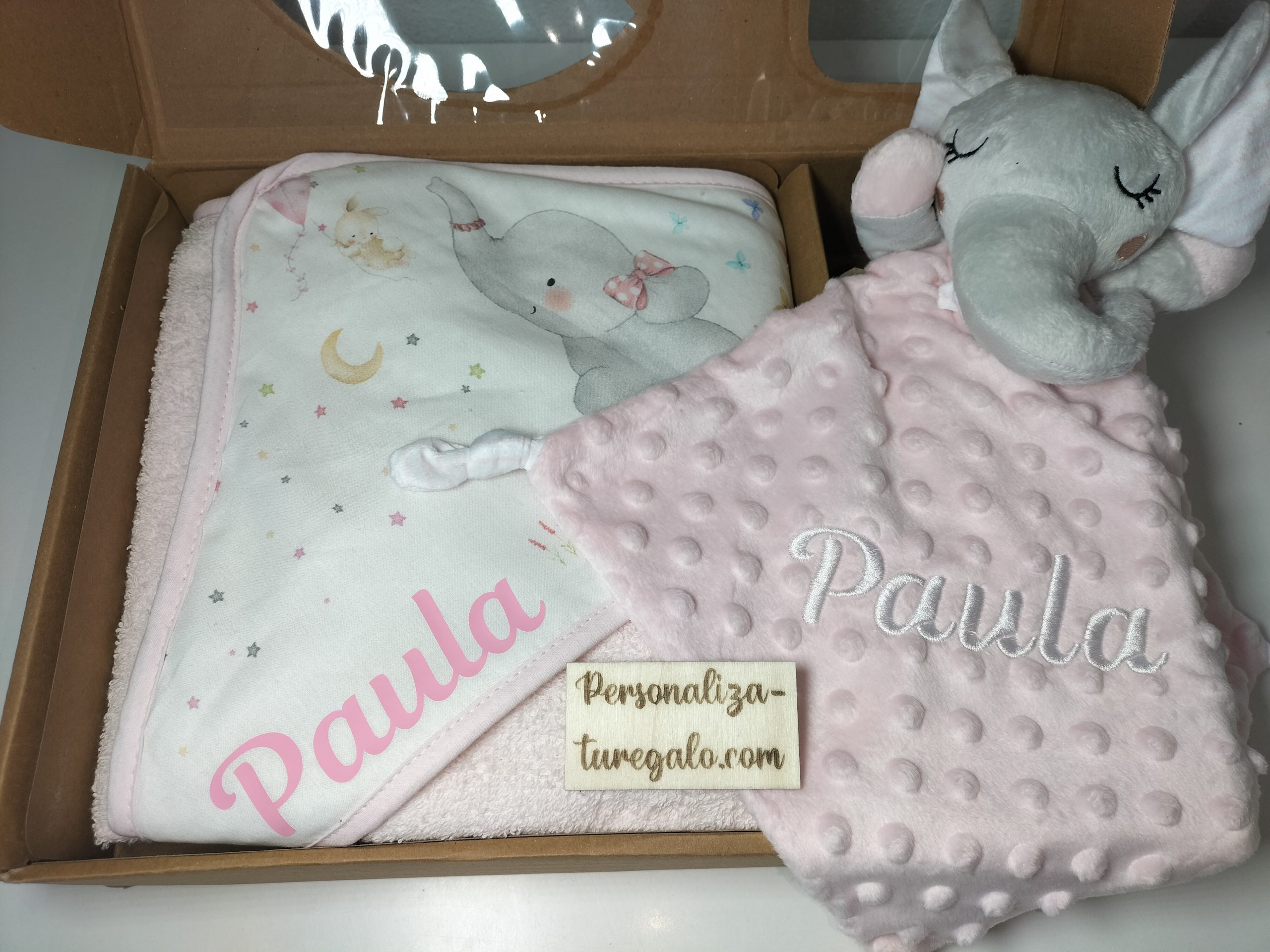 Pack Cajita Capa de Baño Rosa + Doudou Personalizado con nombre