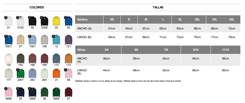 Sudadera personalizada, escoge color y talla (medidas indicadas en la foto)