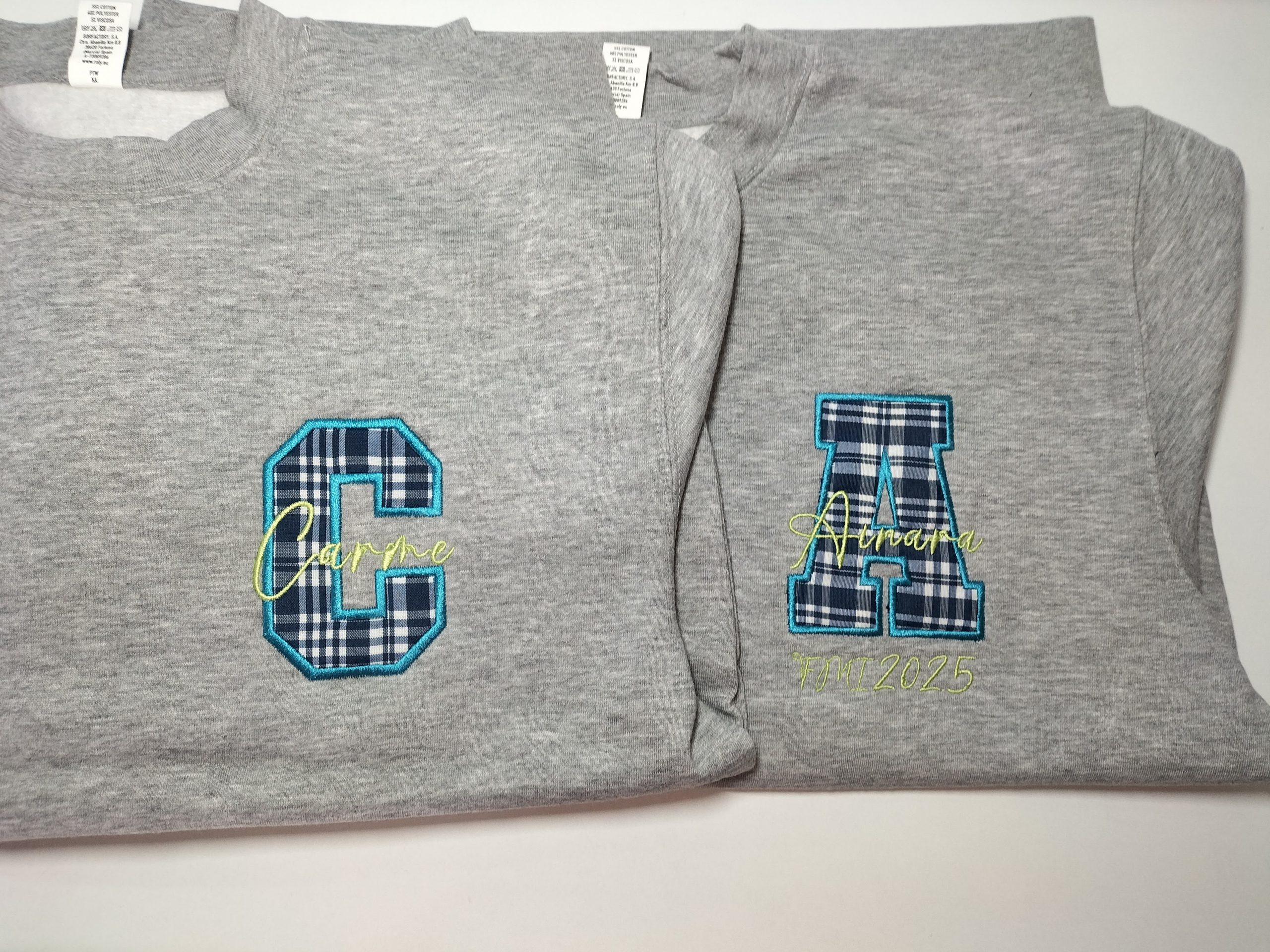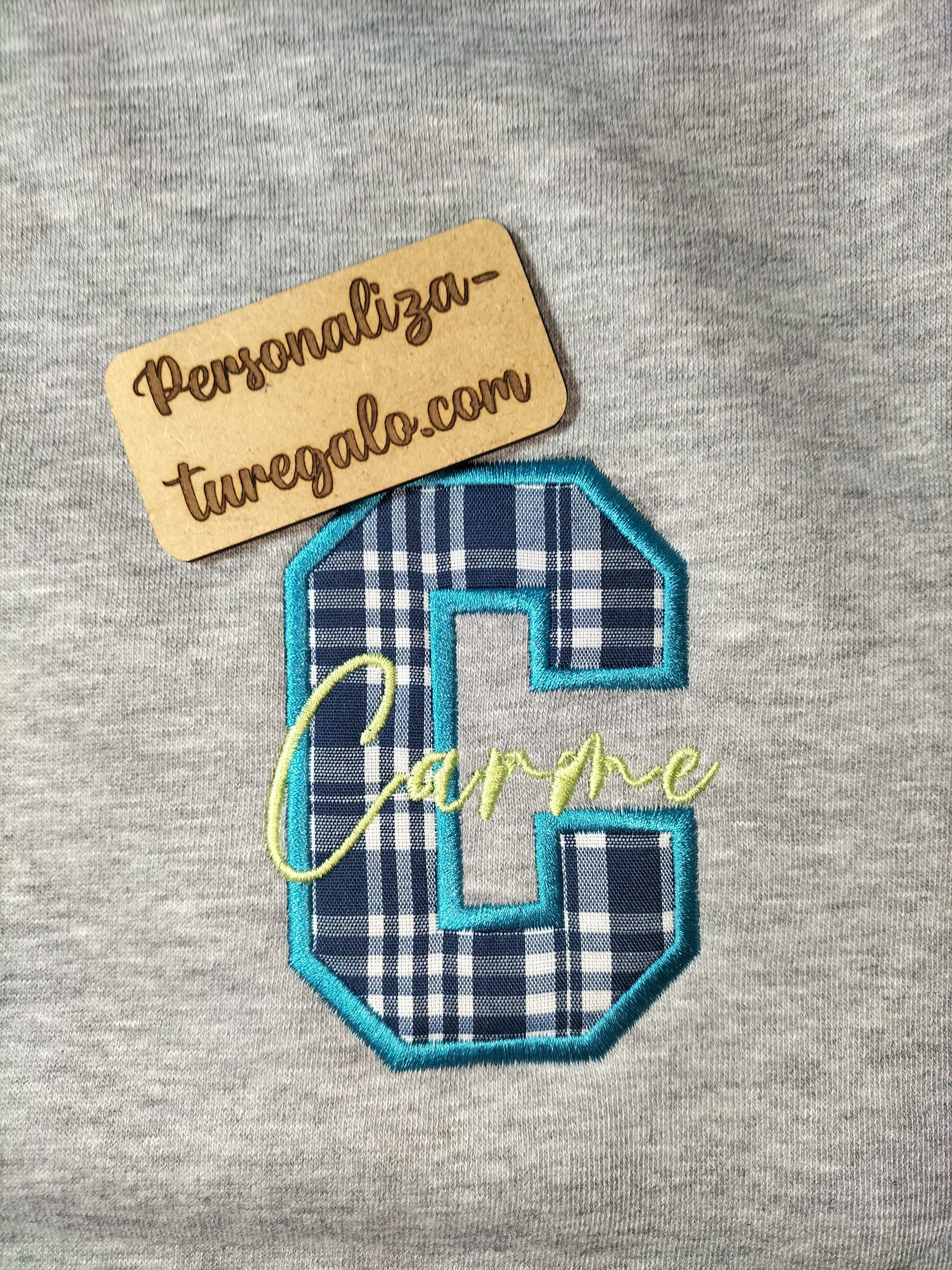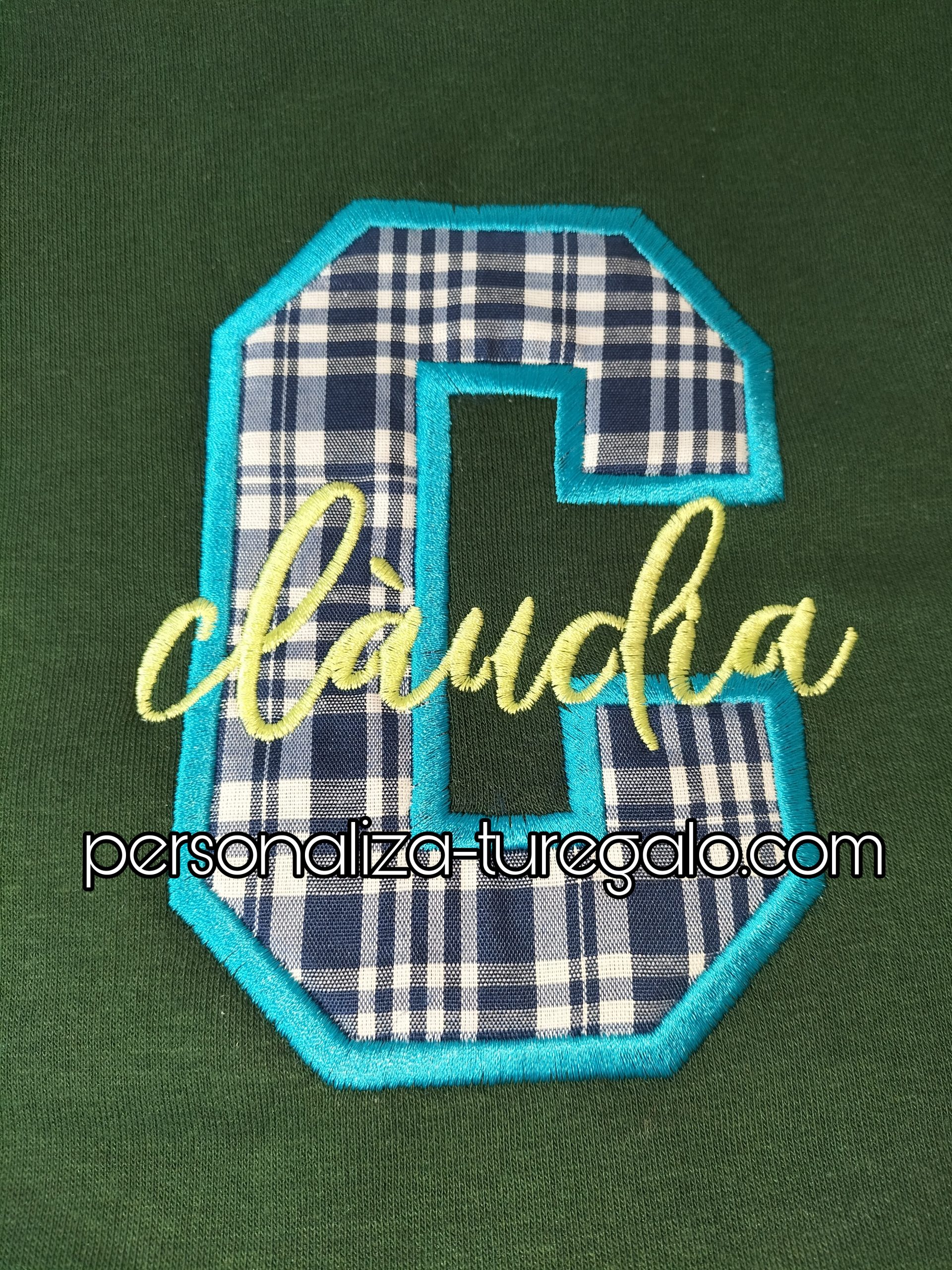 Altura aproximada de la inicial 8-10cm (según la talla de la sudadera será más grande o más pequeña)
